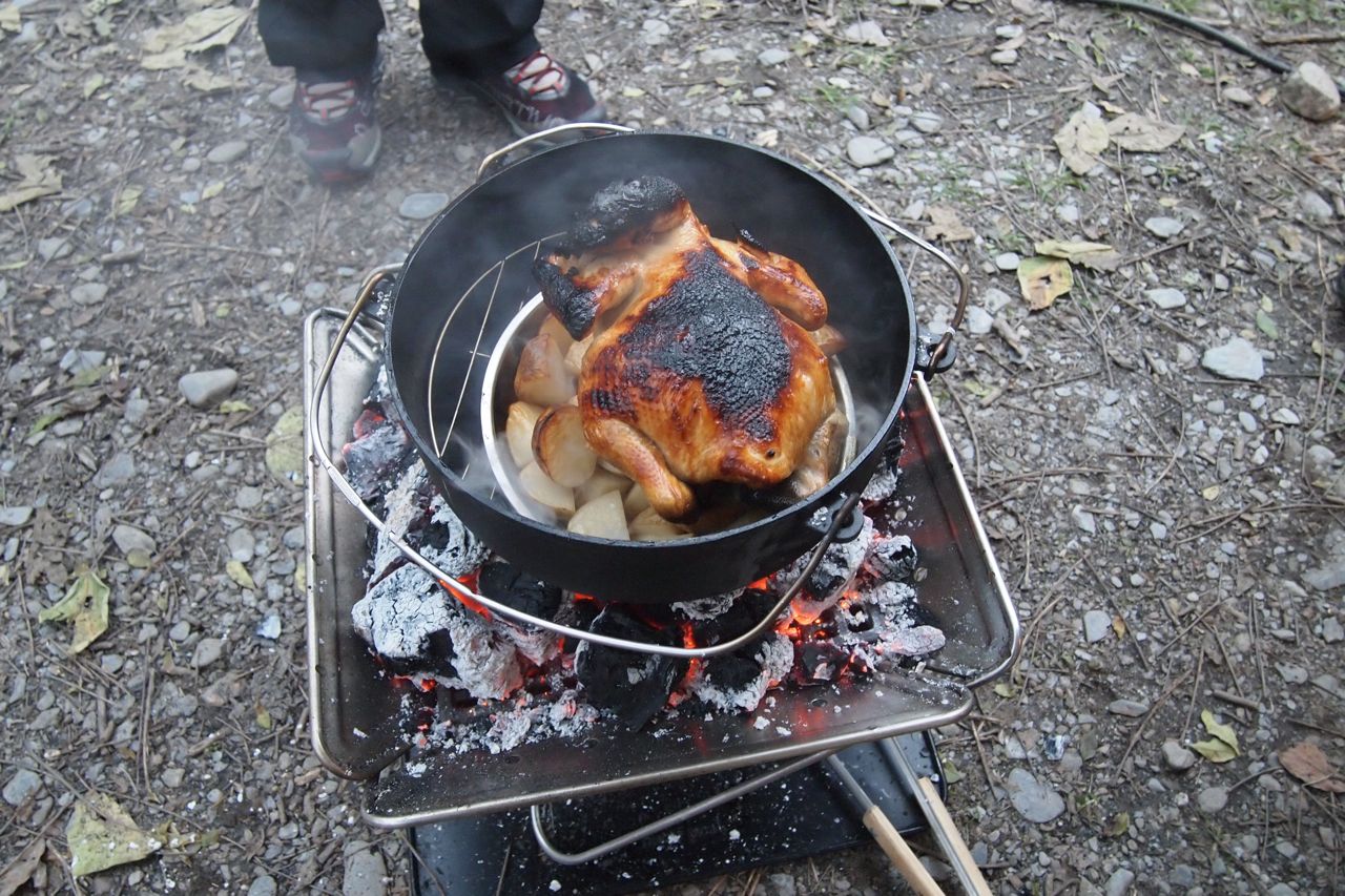 荷蘭鍋本身就可以是一個烤鍋,最簡單、也最多人直接聯想到的一道料理,就是烤雞了,DAVID 我來獻醜一下,提供我露營常用的荷蘭鍋烤雞方法給大家參考一下: